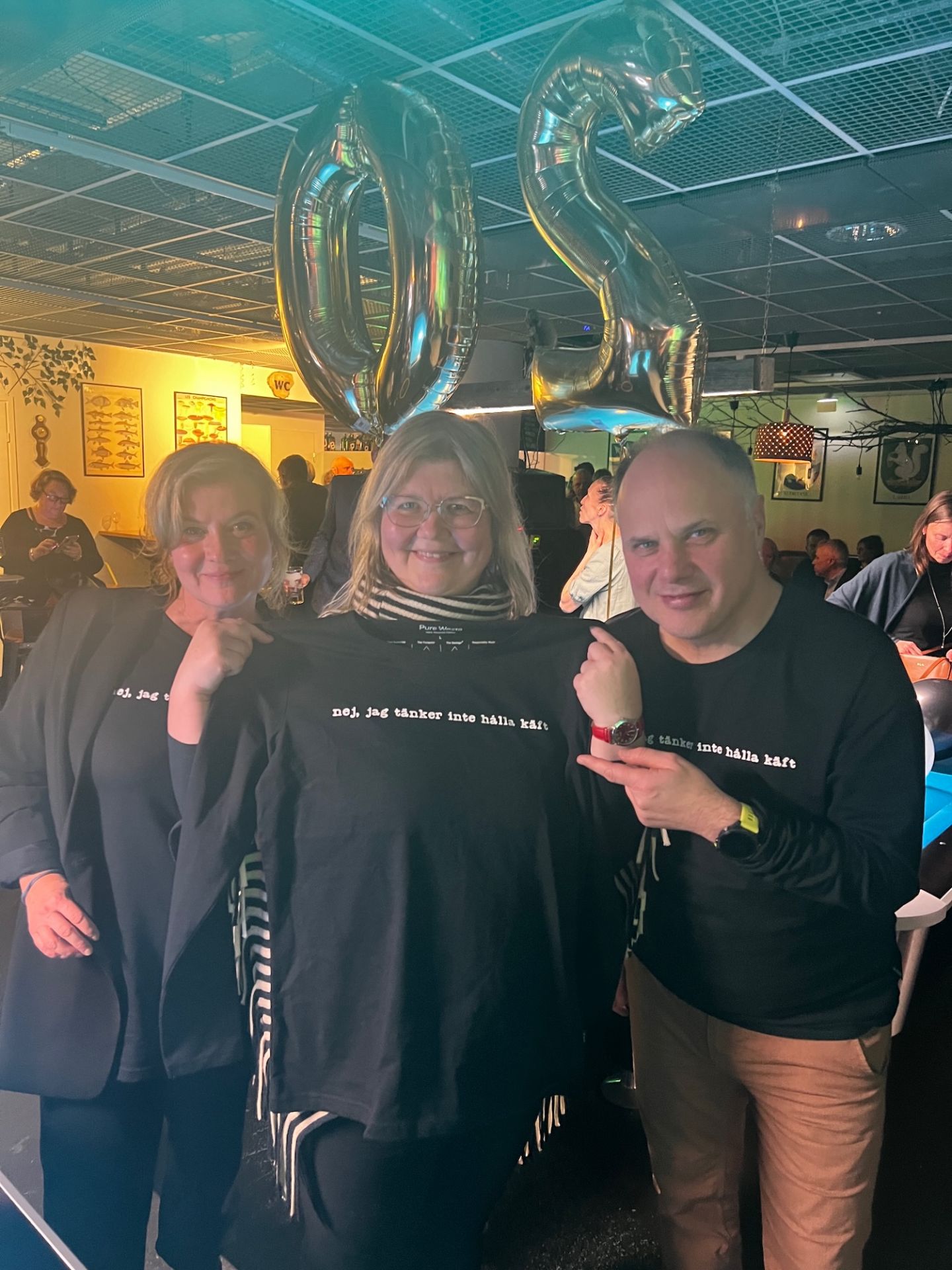 Det var 20-årsfest och hon är den allvetande! Lena Sundström vann den thrillerfyllda frågesporten som gick ut på en brutal men rättvis utslagningsprincip. Till slut var de bara två kvar - Lena och Rosanna Fellman. Lena knep sista frågan och kammade hem den nya eftertraktade skjortan ”nej, jag tänker inte hålla käft”. Grattis, Lena och välkämpat alla!