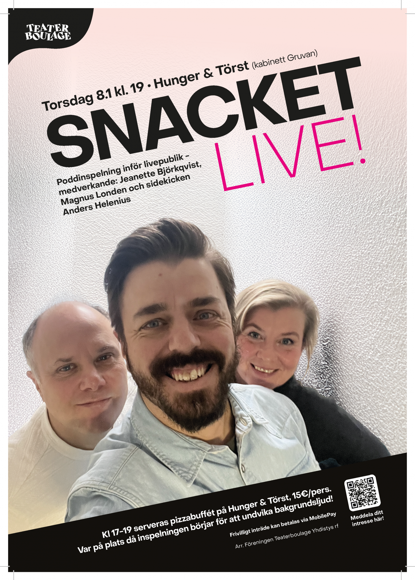 Vi på Snacket älskar att träffa er lyssnare. Därför drar vi gärna ut till Svenskfinland. Hör av dig om du vill ha besök till din hemort.